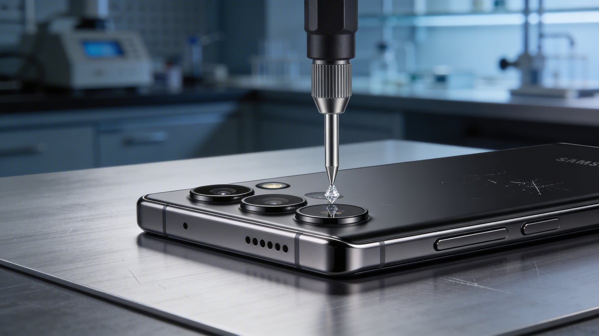 Ekran rysuje się od poziomu 6-7 skali Mohsa (piasek, klucze), ale Gorilla Glass Armor redukuje odbicia o 75% i jest 4x bardziej odporne na zarysowania niż Gorilla Glass Victus. Tylny panel i ramka tytanowa – rysy od poziomu 6, bez głębszych śladów po piasku.